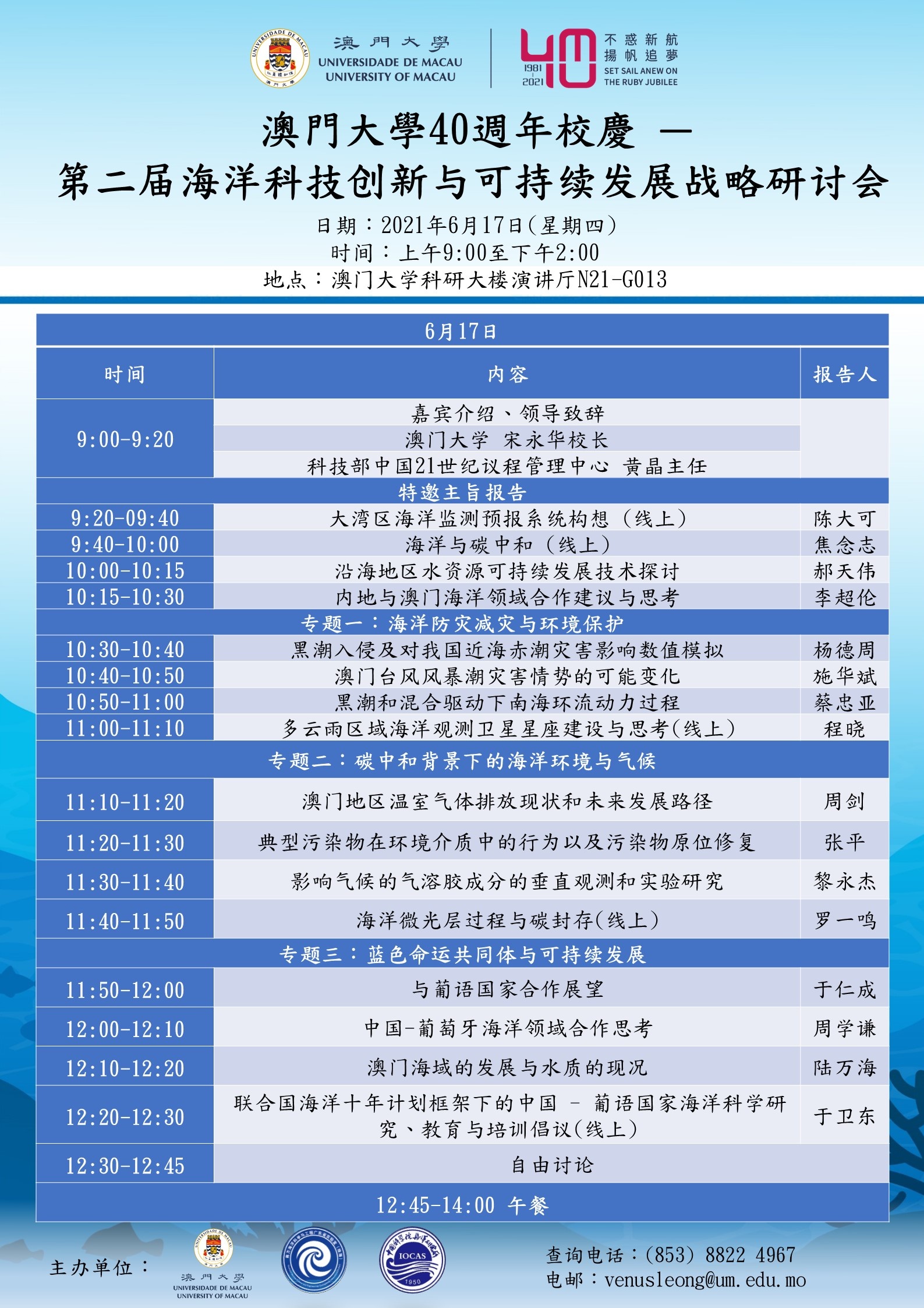 Celebrating the 40th Anniversary of the University of Macau: FST-Conference : 第二屆海洋科技創新與可持續發展戰略研討會