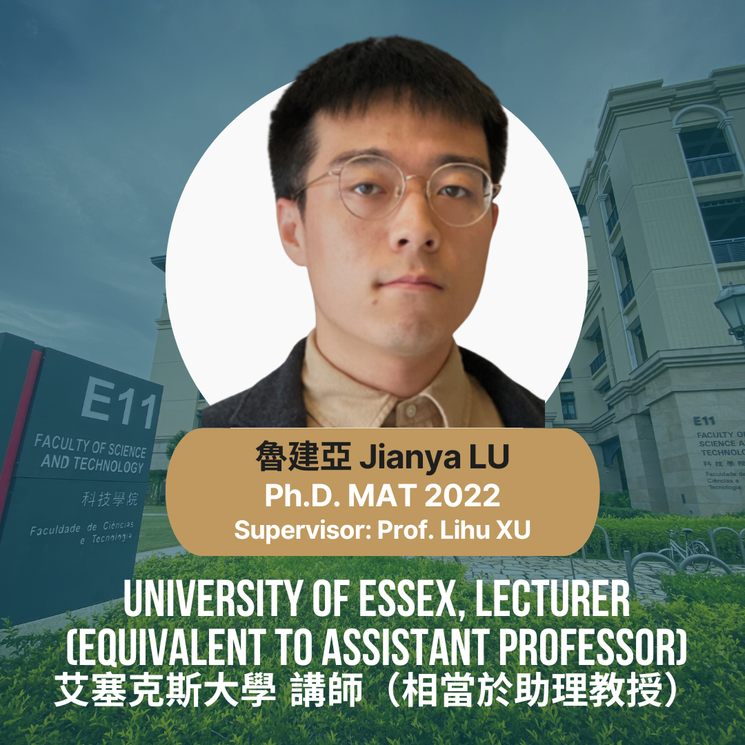 Dr. Jianya Lu, a PhD graduate, has received an offer for the position of Lecturer (equivalent to Assistant Professor) at the University of Essex, United Kingdom. This achievement reflects UM’s years of dedicated effort in talent development and marks international recognition of UM’s educational standards.