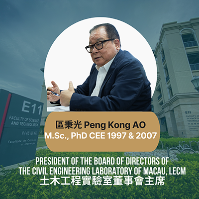 Dr Thomas Cheang is an UM alumnus, who completed his bachelor’s, master’s, and doctoral studies at UM. He is currently a senior engineer at the Companhia de Electricidade de Macau (CEM), the city’s only electric power utility company. ‘Thanks to the education I received at UM, I have been able to make a contribution to the community with my professional knowledge.’ says Cheang.