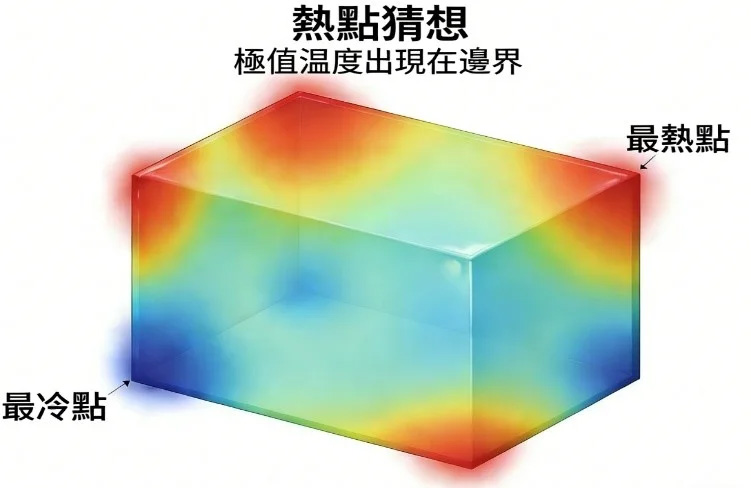 該研究聚焦於美國數學家Jeffrey Rauch於1974年提出的“熱點猜想”,通過物理現象來理解這一數學問題的核心,在一間絕熱的房間內,局部熱源產生的熱量擴散過程中會出現溫度的極值點。按照直覺,這些溫度極值應僅出現在房間的邊界,而非內部。這一物理直覺在帶有Neumann(絕熱)邊界條件的熱方程框架下,被轉化為嚴謹的數學表述。從數學層面而言,“熱點猜想”的具體斷言為:在平面凸區域中,拉普拉斯算子的第二Neumann特徵函數(即主導溫度向均勻狀態衰減的最慢模式),其最大值與最小值僅存在於區域的邊界處。半個多世紀以來,這一問題受到了眾多國際頂尖數學家的關注,包括菲爾茲獎得主陶哲軒(Terence Tao)、Wendelin Werner,以及國際數學家大會(ICM)報告人Richard F. Bass、David Jerison、Nikolai Nadirashvili 等。學界圍繞不同幾何區域和各類特殊情形展開研究,取得了一系列重要進展,但平面三角形這一最簡單的凸多邊形,卻長期成為研究難題。