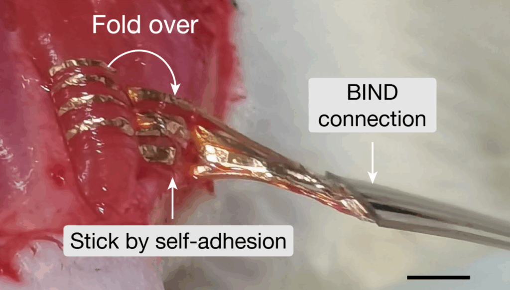 We work on biocompatible, functional materials/structures that maintain their electrical and mechanical properties under deformation – such as stretching, bending, and twisting. This ensures stable, high-fidelity bidirectional communication with biological tissues.