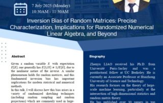 Inversion Bias of Random Matrices: PreciseCharacterization, lmplications for Randomized NumericalLinear Algebra, and Beyond Gallery Inversion Bias of Random Matrices: PreciseCharacterization, lmplications for Randomized NumericalLinear Algebra, and Beyond Inversion Bias of Random Matrices: PreciseCharacterization, lmplications for Randomized NumericalLinear Algebra, and Beyond Jun 26 | Thu ...
