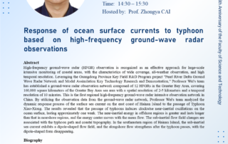 Response of ocean surface currents to typhoon based on high-frequency ground-wave radar observationsSpeaker: Prof. Jun WEI from Sun Yat-Sen UniversityHosted by: Prof. Zhongya CAI